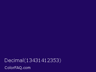 Decimal 13431412353 Color is a very dark indigo color and the nearest color is Paua #260368. Hex code #210761 and RGB value is rgb(33,7,97). In RGB color space, this color is composed of 13% red, 3% green, 38% blue, In CMYK color space, this color is composed of 66% cyan, 93% magenta, 0% yellow , 62% black , In HSL color space, this color has a hue angle of 257° , 87% saturation and 20% lightness.