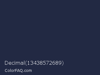 Decimal 13438572689 Color is a very dark blue color and the nearest color is Yankees Blue #1c2841. Hex code #222943 and RGB value is rgb(34,41,67). In RGB color space, this color is composed of 13% red, 16% green, 26% blue, In CMYK color space, this color is composed of 49% cyan, 39% magenta, 0% yellow , 74% black , In HSL color space, this color has a hue angle of 227° , 33% saturation and 20% lightness.