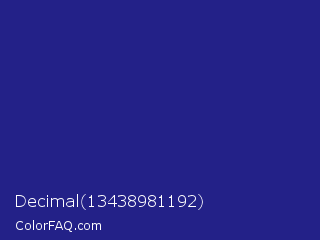 Decimal 13438981192 Color is a normal indigo color and the nearest color is Jacksons Purple #20208d. Hex code #232188 and RGB value is rgb(35,33,136). In RGB color space, this color is composed of 14% red, 13% green, 53% blue, In CMYK color space, this color is composed of 74% cyan, 76% magenta, 0% yellow , 47% black , In HSL color space, this color has a hue angle of 241° , 61% saturation and 33% lightness.