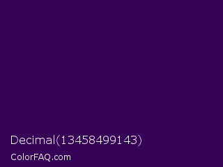 Decimal 13458499143 Color is a very dark purple color and the nearest color is Ripe Plum #410056. Hex code #360257 and RGB value is rgb(54,2,87). In RGB color space, this color is composed of 21% red, 1% green, 34% blue, In CMYK color space, this color is composed of 38% cyan, 98% magenta, 0% yellow , 66% black , In HSL color space, this color has a hue angle of 277° , 96% saturation and 17% lightness.