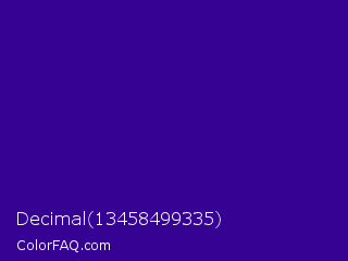 Decimal 13458499335 Color is a dark violet color and the nearest color is Blue Gem #2c0e8c. Hex code #360293 and RGB value is rgb(54,2,147). In RGB color space, this color is composed of 21% red, 1% green, 58% blue, In CMYK color space, this color is composed of 63% cyan, 99% magenta, 0% yellow , 42% black , In HSL color space, this color has a hue angle of 262° , 97% saturation and 29% lightness.