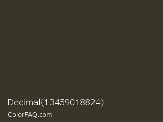 Decimal 13459018824 Color is a very dark yellow color and the nearest color is Birch #373021. Hex code #373628 and RGB value is rgb(55,54,40). In RGB color space, this color is composed of 22% red, 21% green, 16% blue, In CMYK color space, this color is composed of 0% cyan, 2% magenta, 27% yellow , 78% black , In HSL color space, this color has a hue angle of 56° , 16% saturation and 19% lightness.