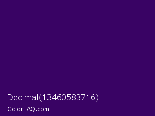Decimal 13460583716 Color is a very dark purple color and the nearest color is Deep Violet #330066. Hex code #390364 and RGB value is rgb(57,3,100). In RGB color space, this color is composed of 22% red, 1% green, 39% blue, In CMYK color space, this color is composed of 43% cyan, 97% magenta, 0% yellow , 61% black , In HSL color space, this color has a hue angle of 273° , 94% saturation and 20% lightness.