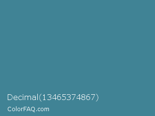 Decimal 13465374867 Color is a normal cyan color and the nearest color is Wedgewood #4e7f9e. Hex code #408395 and RGB value is rgb(64,131,149). In RGB color space, this color is composed of 25% red, 51% green, 58% blue, In CMYK color space, this color is composed of 57% cyan, 12% magenta, 0% yellow , 42% black , In HSL color space, this color has a hue angle of 193° , 40% saturation and 42% lightness.