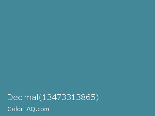 Decimal 13473313865 Color is a normal cyan color and the nearest color is Wedgewood #4e7f9e. Hex code #428899 and RGB value is rgb(66,136,153). In RGB color space, this color is composed of 26% red, 53% green, 60% blue, In CMYK color space, this color is composed of 57% cyan, 11% magenta, 0% yellow , 40% black , In HSL color space, this color has a hue angle of 192° , 40% saturation and 43% lightness.