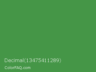 Decimal 13475411289 Color is a normal green color and the nearest color is May Green #4c9141. Hex code #459647 and RGB value is rgb(69,150,71). In RGB color space, this color is composed of 27% red, 59% green, 28% blue, In CMYK color space, this color is composed of 54% cyan, 0% magenta, 53% yellow , 41% black , In HSL color space, this color has a hue angle of 121° , 37% saturation and 43% lightness.