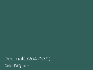 Decimal 52647539 Color is a dark cyan color and the nearest color is Spectra #2f5a57. Hex code #315f59 and RGB value is rgb(49,95,89). In RGB color space, this color is composed of 19% red, 37% green, 35% blue, In CMYK color space, this color is composed of 48% cyan, 0% magenta, 6% yellow , 63% black , In HSL color space, this color has a hue angle of 172° , 32% saturation and 28% lightness.