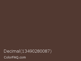 Decimal 13490280087 Color is a dark color and the nearest color is Rock #4d3833. Hex code #523931 and RGB value is rgb(82,57,49). In RGB color space, this color is composed of 32% red, 22% green, 19% blue, In CMYK color space, this color is composed of 0% cyan, 30% magenta, 40% yellow , 68% black , In HSL color space, this color has a hue angle of 15° , 25% saturation and 26% lightness.