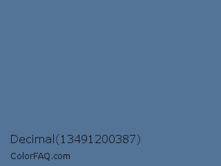 Decimal 13491200387 Color is a normal blue color and the nearest color is Kashmir Blue #507096. Hex code #537397 and RGB value is rgb(83,115,151). In RGB color space, this color is composed of 33% red, 45% green, 59% blue, In CMYK color space, this color is composed of 45% cyan, 24% magenta, 0% yellow , 41% black , In HSL color space, this color has a hue angle of 212° , 29% saturation and 46% lightness.