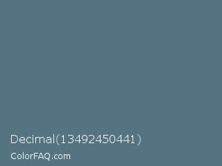 Decimal 13492450441 Color is a normal blue color and the nearest color is Bismark #497183. Hex code #557481 and RGB value is rgb(85,116,129). In RGB color space, this color is composed of 33% red, 45% green, 51% blue, In CMYK color space, this color is composed of 34% cyan, 10% magenta, 0% yellow , 49% black , In HSL color space, this color has a hue angle of 198° , 21% saturation and 42% lightness.
