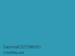 Decimal 52758633 Color is a normal cyan color and the nearest color is Boston Blue #3b91b4. Hex code #319ab5 and RGB value is rgb(49,154,181). In RGB color space, this color is composed of 19% red, 60% green, 71% blue, In CMYK color space, this color is composed of 73% cyan, 15% magenta, 0% yellow , 29% black , In HSL color space, this color has a hue angle of 192° , 57% saturation and 45% lightness.