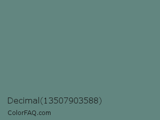 Decimal 13507903588 Color is a normal cyan color and the nearest color is Steel Teal #5f8a8b. Hex code #628680 and RGB value is rgb(98,134,128). In RGB color space, this color is composed of 38% red, 53% green, 50% blue, In CMYK color space, this color is composed of 27% cyan, 0% magenta, 4% yellow , 47% black , In HSL color space, this color has a hue angle of 170° , 16% saturation and 45% lightness.