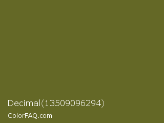 Decimal 13509096294 Color is a dark yellow color and the nearest color is Fern Frond #657220. Hex code #646826 and RGB value is rgb(100,104,38). In RGB color space, this color is composed of 39% red, 41% green, 15% blue, In CMYK color space, this color is composed of 4% cyan, 0% magenta, 63% yellow , 59% black , In HSL color space, this color has a hue angle of 64° , 46% saturation and 28% lightness.