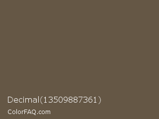 Decimal 13509887361 Color is a normal orange color and the nearest color is Umber #635147. Hex code #655745 and RGB value is rgb(101,87,69). In RGB color space, this color is composed of 40% red, 34% green, 27% blue, In CMYK color space, this color is composed of 0% cyan, 14% magenta, 32% yellow , 60% black , In HSL color space, this color has a hue angle of 34° , 19% saturation and 33% lightness.