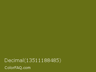 Decimal 13511188485 Color is a dark yellow color and the nearest color is Fern Frond #657220. Hex code #677015 and RGB value is rgb(103,112,21). In RGB color space, this color is composed of 40% red, 44% green, 8% blue, In CMYK color space, this color is composed of 8% cyan, 0% magenta, 81% yellow , 56% black , In HSL color space, this color has a hue angle of 66° , 68% saturation and 26% lightness.