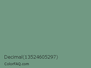 Decimal 13524605297 Color is a normal green color and the nearest color is Oxley #779e86. Hex code #719983 and RGB value is rgb(113,153,131). In RGB color space, this color is composed of 44% red, 60% green, 51% blue, In CMYK color space, this color is composed of 26% cyan, 0% magenta, 14% yellow , 40% black , In HSL color space, this color has a hue angle of 147° , 16% saturation and 52% lightness.