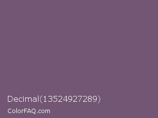 Decimal 13524927289 Color is a normal magenta color and the nearest color is Salt Box #685e6e. Hex code #725673 and RGB value is rgb(114,86,115). In RGB color space, this color is composed of 45% red, 34% green, 45% blue, In CMYK color space, this color is composed of 1% cyan, 25% magenta, 0% yellow , 55% black , In HSL color space, this color has a hue angle of 298° , 14% saturation and 39% lightness.