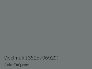 Decimal 13525796929 Color is a normal cyan color and the nearest color is Sonic Silver #757575. Hex code #737979 and RGB value is rgb(115,121,121). In RGB color space, this color is composed of 45% red, 47% green, 47% blue, In CMYK color space, this color is composed of 5% cyan, 0% magenta, 0% yellow , 53% black , In HSL color space, this color has a hue angle of 180° , 3% saturation and 46% lightness.