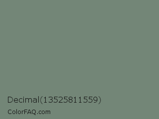 Decimal 13525811559 Color is a normal green color and the nearest color is Xanadu #738678. Hex code #738677 and RGB value is rgb(115,134,119). In RGB color space, this color is composed of 45% red, 53% green, 47% blue, In CMYK color space, this color is composed of 14% cyan, 0% magenta, 11% yellow , 47% black , In HSL color space, this color has a hue angle of 133° , 8% saturation and 49% lightness.