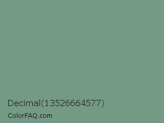 Decimal 13526664577 Color is a normal green color and the nearest color is Oxley #779e86. Hex code #749985 and RGB value is rgb(116,153,133). In RGB color space, this color is composed of 45% red, 60% green, 52% blue, In CMYK color space, this color is composed of 24% cyan, 0% magenta, 13% yellow , 40% black , In HSL color space, this color has a hue angle of 148° , 15% saturation and 53% lightness.