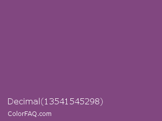 Decimal 13541545298 Color is a normal magenta color and the nearest color is Plum #8e4585. Hex code #814780 and RGB value is rgb(129,71,128). In RGB color space, this color is composed of 51% red, 28% green, 50% blue, In CMYK color space, this color is composed of 0% cyan, 45% magenta, 1% yellow , 49% black , In HSL color space, this color has a hue angle of 301° , 29% saturation and 39% lightness.