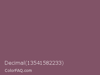 Decimal 13541582233 Color is a normal rose color and the nearest color is Deep Taupe #7e5e60. Hex code #815367 and RGB value is rgb(129,83,103). In RGB color space, this color is composed of 51% red, 33% green, 40% blue, In CMYK color space, this color is composed of 0% cyan, 36% magenta, 20% yellow , 49% black , In HSL color space, this color has a hue angle of 334° , 22% saturation and 42% lightness.