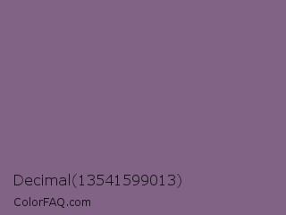 Decimal 13541599013 Color is a normal magenta color and the nearest color is Chinese Violet #856088. Hex code #816385 and RGB value is rgb(129,99,133). In RGB color space, this color is composed of 51% red, 39% green, 52% blue, In CMYK color space, this color is composed of 3% cyan, 26% magenta, 0% yellow , 48% black , In HSL color space, this color has a hue angle of 293° , 15% saturation and 45% lightness.