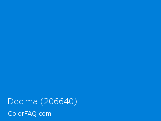 Decimal 206640 Color is a normal blue color and the nearest color is True Blue #0073cf. Hex code #007fda and RGB value is rgb(0,127,218). In RGB color space, this color is composed of 0% red, 50% green, 85% blue, In CMYK color space, this color is composed of 100% cyan, 42% magenta, 0% yellow , 15% black , In HSL color space, this color has a hue angle of 205° , 100% saturation and 43% lightness.