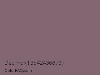 Decimal 13542436873 Color is a normal rose color and the nearest color is Falcon #7f626d. Hex code #826671 and RGB value is rgb(130,102,113). In RGB color space, this color is composed of 51% red, 40% green, 44% blue, In CMYK color space, this color is composed of 0% cyan, 22% magenta, 13% yellow , 49% black , In HSL color space, this color has a hue angle of 336° , 12% saturation and 45% lightness.