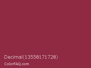 Decimal 13558171728 Color is a normal red color and the nearest color is Big Dip O Ruby #9c2542. Hex code #902942 and RGB value is rgb(144,41,66). In RGB color space, this color is composed of 56% red, 16% green, 26% blue, In CMYK color space, this color is composed of 0% cyan, 72% magenta, 54% yellow , 44% black , In HSL color space, this color has a hue angle of 345° , 56% saturation and 36% lightness.