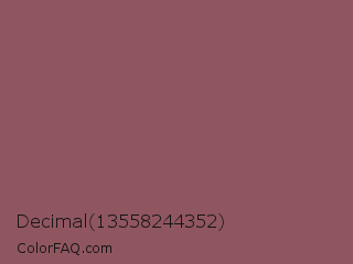 Decimal 13558244352 Color is a normal red color and the nearest color is Rose Taupe #905d5d. Hex code #905660 and RGB value is rgb(144,86,96). In RGB color space, this color is composed of 56% red, 34% green, 38% blue, In CMYK color space, this color is composed of 0% cyan, 40% magenta, 33% yellow , 44% black , In HSL color space, this color has a hue angle of 350° , 25% saturation and 45% lightness.