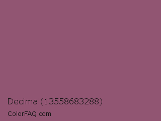 Decimal 13558683288 Color is a normal rose color and the nearest color is Sugar Plum #914e75. Hex code #915572 and RGB value is rgb(145,85,114). In RGB color space, this color is composed of 57% red, 33% green, 45% blue, In CMYK color space, this color is composed of 0% cyan, 41% magenta, 21% yellow , 43% black , In HSL color space, this color has a hue angle of 331° , 26% saturation and 45% lightness.