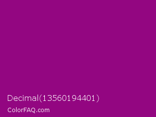 Decimal 13560194401 Color is a dark magenta color and the nearest color is Mardi Gras #880085. Hex code #930681 and RGB value is rgb(147,6,129). In RGB color space, this color is composed of 58% red, 2% green, 51% blue, In CMYK color space, this color is composed of 0% cyan, 96% magenta, 12% yellow , 42% black , In HSL color space, this color has a hue angle of 308° , 92% saturation and 30% lightness.
