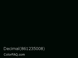 Decimal 861235008 Color is a almost black green color and the nearest color is Rich Black FOGRA39 #010203. Hex code #000904 and RGB value is rgb(0,9,4). In RGB color space, this color is composed of 0% red, 4% green, 2% blue, In CMYK color space, this color is composed of 100% cyan, 0% magenta, 56% yellow , 96% black , In HSL color space, this color has a hue angle of 147° , 100% saturation and 2% lightness.