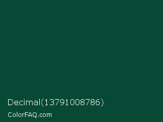 Decimal 13791008786 Color is a very dark green color and the nearest color is Sherwood Green #02402c. Hex code #074934 and RGB value is rgb(7,73,52). In RGB color space, this color is composed of 3% red, 29% green, 20% blue, In CMYK color space, this color is composed of 90% cyan, 0% magenta, 29% yellow , 71% black , In HSL color space, this color has a hue angle of 161° , 83% saturation and 16% lightness.