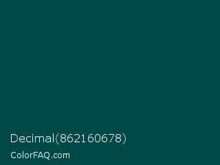 Decimal 862160678 Color is a very dark cyan color and the nearest color is Aqua Deep #014b43. Hex code #014946 and RGB value is rgb(1,73,70). In RGB color space, this color is composed of 0% red, 29% green, 27% blue, In CMYK color space, this color is composed of 99% cyan, 0% magenta, 4% yellow , 71% black , In HSL color space, this color has a hue angle of 178° , 97% saturation and 15% lightness.