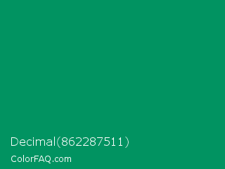 Decimal 862287511 Color is a dark green color and the nearest color is Green Cyan #009966. Hex code #019361 and RGB value is rgb(1,147,97). In RGB color space, this color is composed of 0% red, 58% green, 38% blue, In CMYK color space, this color is composed of 99% cyan, 0% magenta, 34% yellow , 42% black , In HSL color space, this color has a hue angle of 159° , 99% saturation and 29% lightness.