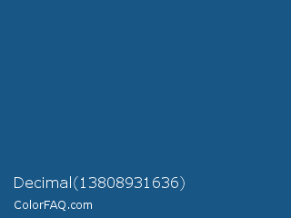 Decimal 13808931636 Color is a normal blue color and the nearest color is Blumine #18587a. Hex code #185686 and RGB value is rgb(24,86,134). In RGB color space, this color is composed of 9% red, 34% green, 53% blue, In CMYK color space, this color is composed of 82% cyan, 36% magenta, 0% yellow , 47% black , In HSL color space, this color has a hue angle of 206° , 70% saturation and 31% lightness.