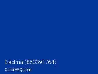 Decimal 863391764 Color is a dark blue color and the nearest color is Smalt #003399. Hex code #033696 and RGB value is rgb(3,54,150). In RGB color space, this color is composed of 1% red, 21% green, 59% blue, In CMYK color space, this color is composed of 98% cyan, 64% magenta, 0% yellow , 41% black , In HSL color space, this color has a hue angle of 219° , 96% saturation and 30% lightness.
