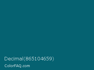 Decimal 865104659 Color is a dark cyan color and the nearest color is Mosque #036a6e. Hex code #056271 and RGB value is rgb(5,98,113). In RGB color space, this color is composed of 2% red, 38% green, 44% blue, In CMYK color space, this color is composed of 96% cyan, 13% magenta, 0% yellow , 56% black , In HSL color space, this color has a hue angle of 188° , 92% saturation and 23% lightness.