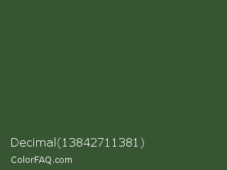 Decimal 13842711381 Color is a dark green color and the nearest color is Tom Thumb #3f583b. Hex code #375433 and RGB value is rgb(55,84,51). In RGB color space, this color is composed of 22% red, 33% green, 20% blue, In CMYK color space, this color is composed of 35% cyan, 0% magenta, 39% yellow , 67% black , In HSL color space, this color has a hue angle of 113° , 24% saturation and 26% lightness.