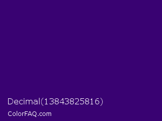 Decimal 13843825816 Color is a dark violet color and the nearest color is Blue Diamond #380474. Hex code #390272 and RGB value is rgb(57,2,114). In RGB color space, this color is composed of 22% red, 1% green, 45% blue, In CMYK color space, this color is composed of 50% cyan, 98% magenta, 0% yellow , 55% black , In HSL color space, this color has a hue angle of 269° , 97% saturation and 23% lightness.