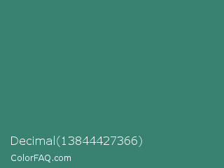 Decimal 13844427366 Color is a normal cyan color and the nearest color is Viridian #40826d. Hex code #398272 and RGB value is rgb(57,130,114). In RGB color space, this color is composed of 22% red, 51% green, 45% blue, In CMYK color space, this color is composed of 56% cyan, 0% magenta, 12% yellow , 49% black , In HSL color space, this color has a hue angle of 167° , 39% saturation and 37% lightness.
