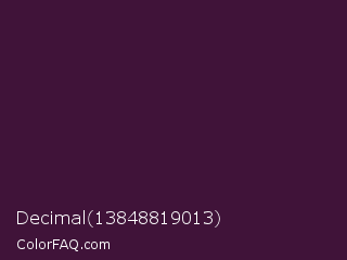Decimal 13848819013 Color is a very dark magenta color and the nearest color is Loulou #460b41. Hex code #401339 and RGB value is rgb(64,19,57). In RGB color space, this color is composed of 25% red, 7% green, 22% blue, In CMYK color space, this color is composed of 0% cyan, 70% magenta, 11% yellow , 75% black , In HSL color space, this color has a hue angle of 309° , 54% saturation and 16% lightness.