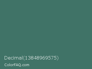 Decimal 13848969575 Color is a normal cyan color and the nearest color is Hookers Green #49796b. Hex code #407367 and RGB value is rgb(64,115,103). In RGB color space, this color is composed of 25% red, 45% green, 40% blue, In CMYK color space, this color is composed of 44% cyan, 0% magenta, 10% yellow , 55% black , In HSL color space, this color has a hue angle of 166° , 28% saturation and 35% lightness.