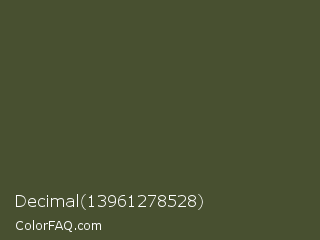 Decimal 13961278528 Color is a dark lime color and the nearest color is Kelp #454936. Hex code #485030 and RGB value is rgb(72,80,48). In RGB color space, this color is composed of 28% red, 31% green, 19% blue, In CMYK color space, this color is composed of 10% cyan, 0% magenta, 40% yellow , 69% black , In HSL color space, this color has a hue angle of 75° , 25% saturation and 25% lightness.