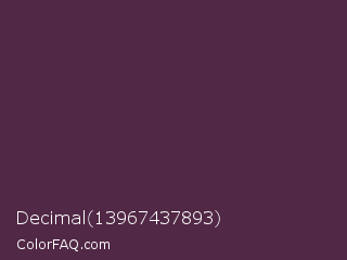 Decimal 13967437893 Color is a dark magenta color and the nearest color is Matterhorn #4e3b41. Hex code #512845 and RGB value is rgb(81,40,69). In RGB color space, this color is composed of 32% red, 16% green, 27% blue, In CMYK color space, this color is composed of 0% cyan, 51% magenta, 15% yellow , 68% black , In HSL color space, this color has a hue angle of 318° , 34% saturation and 24% lightness.