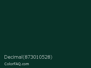 Decimal 873010528 Color is a very dark cyan color and the nearest color is Bottle Green #093624. Hex code #083228 and RGB value is rgb(8,50,40). In RGB color space, this color is composed of 3% red, 20% green, 16% blue, In CMYK color space, this color is composed of 84% cyan, 0% magenta, 20% yellow , 80% black , In HSL color space, this color has a hue angle of 166° , 72% saturation and 11% lightness.