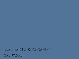 Decimal 13968376097 Color is a normal blue color and the nearest color is Kashmir Blue #507096. Hex code #527499 and RGB value is rgb(82,116,153). In RGB color space, this color is composed of 32% red, 45% green, 60% blue, In CMYK color space, this color is composed of 46% cyan, 24% magenta, 0% yellow , 40% black , In HSL color space, this color has a hue angle of 211° , 30% saturation and 46% lightness.