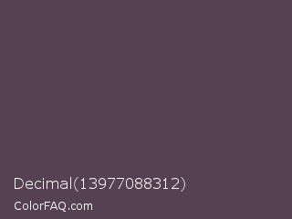 Decimal 13977088312 Color is a dark magenta color and the nearest color is Mortar #504351. Hex code #564152 and RGB value is rgb(86,65,82). In RGB color space, this color is composed of 34% red, 25% green, 32% blue, In CMYK color space, this color is composed of 0% cyan, 24% magenta, 5% yellow , 66% black , In HSL color space, this color has a hue angle of 311° , 14% saturation and 30% lightness.
